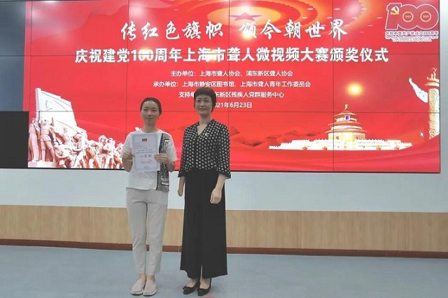 对特教班而言,思政美育是塑造特教学生正确三观,获得自信的有效途径。为此,吴斐坚持鼓励学生参加各类竞赛活动,曾带领学生荣获2021年第十一届全国大学生红色旅游创意策划大赛华东赛区红色精神微讲解(全国)类二等奖、2021年“传红色旗帜 颂今朝世界”庆祝建党100周年上海市聋人微视频大赛《歌唱祖国》一等奖和《红色之旅》优秀奖等。