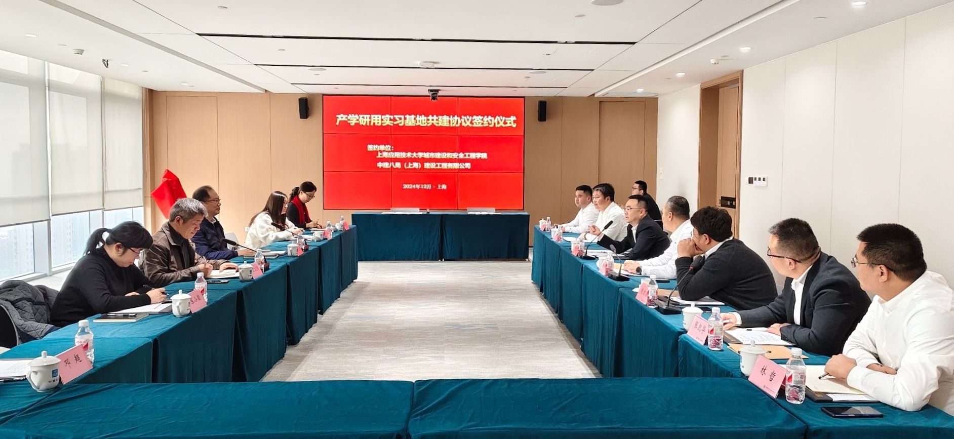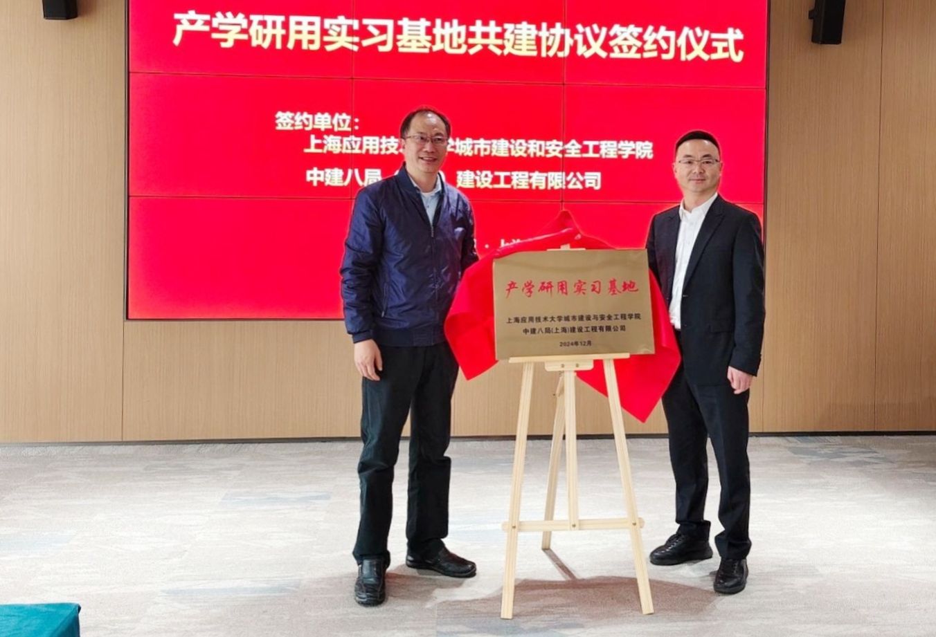 12月26日,上海应用技术大学城市建设与安全工程学院与中建八局(上海)建设工程有限公司签署产学研用实习基地协议。中建八局华东分局副局长周升哲,中建八局(上海)建设工程有限公司李广东、王洪斌及相关领导、部门负责人出席签约仪式。副校长毛祥东、城建学院院长丁文胜、党委学生工作部副部长李婉,以及城建学院相关负责人出席参加。