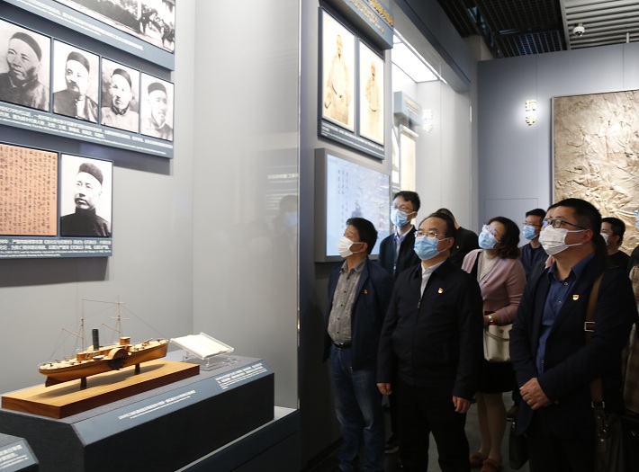 参观中,郭庆松仔细观看展品与视频,认真听取讲解,不时与大家交流讨论。郭庆松指出,实现中华民族伟大复兴历史进程的“不可逆转”,归根结底,根本逻辑就在于有中国共产党的坚强领导。追寻百年党史,中国共产党的政治领导力、思想引领力、群众组织力、社会号召力,将中国共产党铸造成担当领导民族复兴历史重任的一块“整钢”,使其成为民族复兴最坚定、最可靠、最有力的引领者、推动者和实践者。