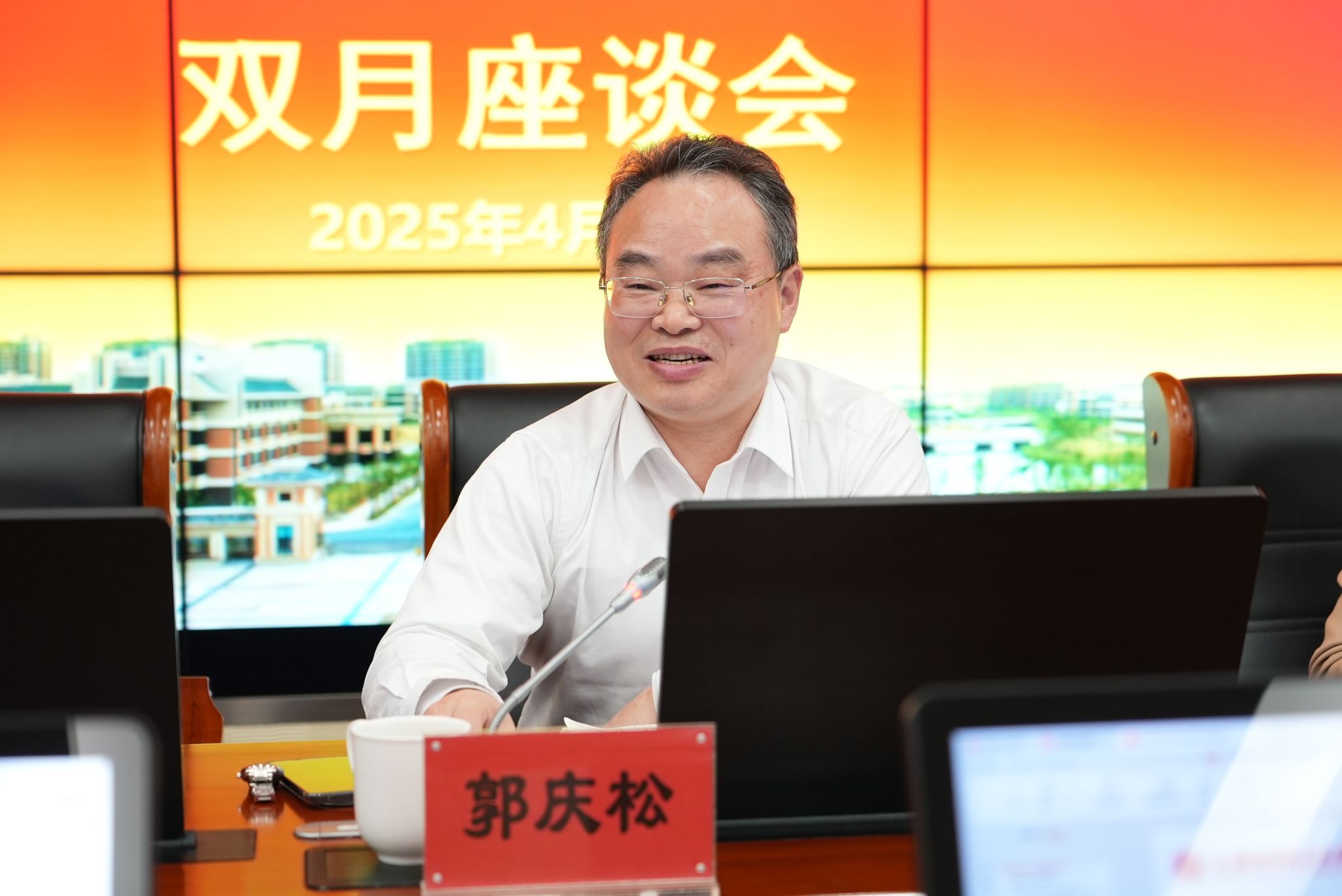 4月17日,学校召开双月座谈会,校党委书记郭庆松出席并讲话。校党委副书记陈海瑾主持。各民主党派、统战团体、无党派人士、群众代表出席。党政办、统战部、发展规划处相关人员参加。