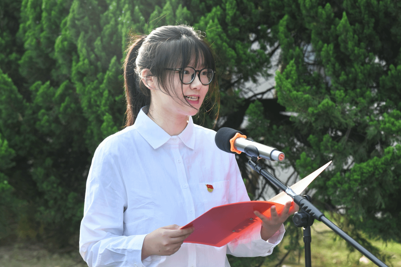 智能技术学部学生代表靳知鉴和艺术学院学生代表陈馨洁作“国旗下的演讲”,他们表示会继承和发扬五四精神,坚定不移听党话、跟党走,争做有理想、敢担当、能吃苦、肯奋斗的新时代好青年,以奋斗姿态激扬青春、实现梦想。
