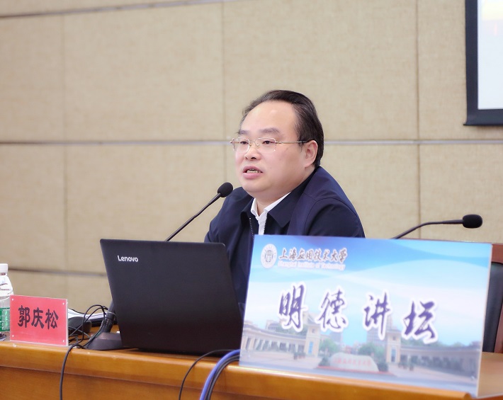 校党委书记郭庆松走进明德讲坛宣讲“七一”重要讲话精神