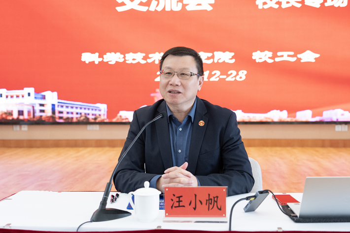 12月28日下午,上海应用技术大学第四届品茶论“金”交流会(校长专场)在工会二楼多功厅举办。本次会议由科学技术研究院和工会联合举办。校长汪小帆出席会议,校办、校工会、科研院相关人员、首届校优秀青年人才高级培训班学员和各学院(部)教师代表等参加本次会议。会议由科学技术研究院院长韩生主持。