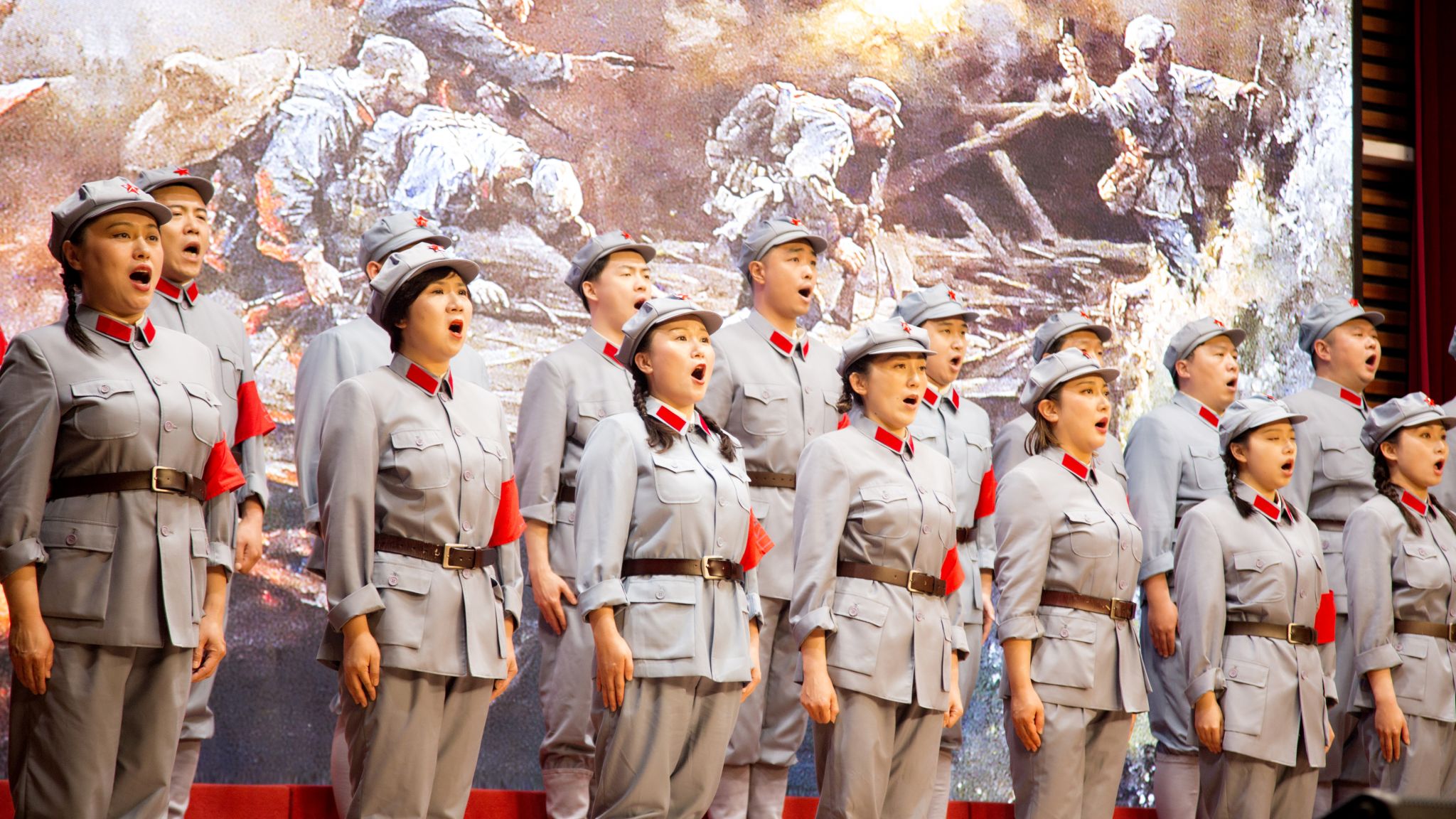 《告别》:“红旗飘,军号响,子弟兵,别故乡。”歌声响起……这是长征的起点,也是军民鱼水情的缩影。《突破封锁线》:急促的旋律再现了红军血战湘江的惨烈,江水被鲜血染红,但“红军意志比铁坚”。《遵义会议放光辉》:悠扬的女声二重唱中,“北斗指方向”,毛泽东同志重新掌舵,中国革命从这里转折。