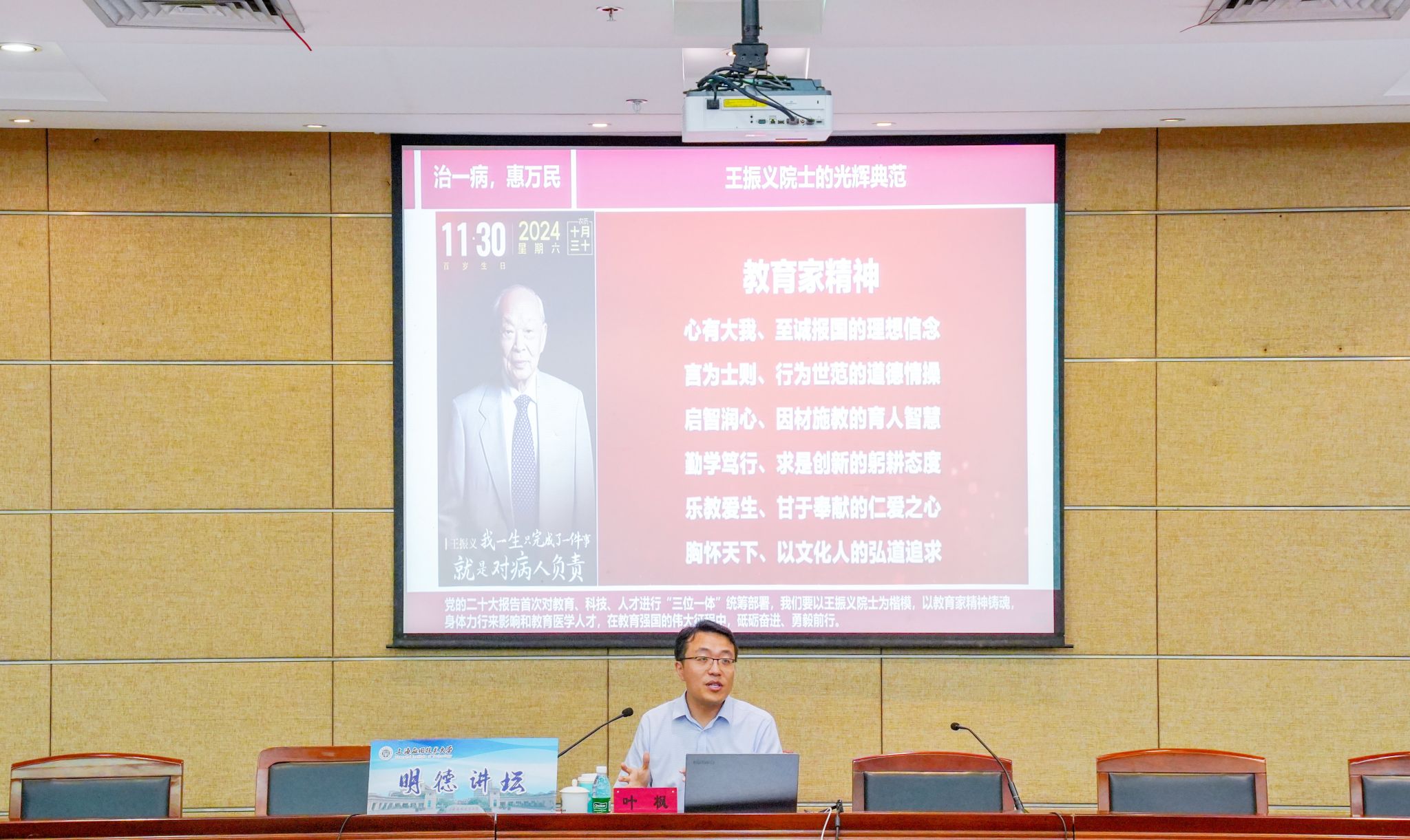 9月19日,学校举行明德讲坛暨教育家精神宣讲会,特邀教育部“教育家精神2025年巡回宣讲团”成员、上海交通大学医学院附属瑞金医院副教授叶枫为广大教师深情讲述中国工程院院士、“共和国勋章”获得者王振义教授的先进事迹。宣讲会由校党委副书记陈海瑾主持,2025年新进教师校内培训班全体教师及各学院(部)教师代表参会。