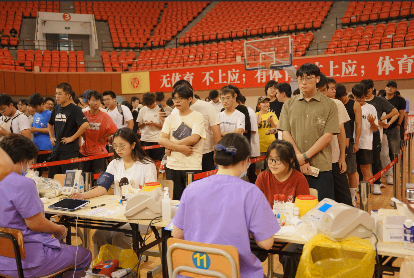 9月28日至29日,学校在体育馆开展献血活动,无偿献血活动得到了智能技术学部、城市建设与生态技术学部、理学院献血同学的热情参与。