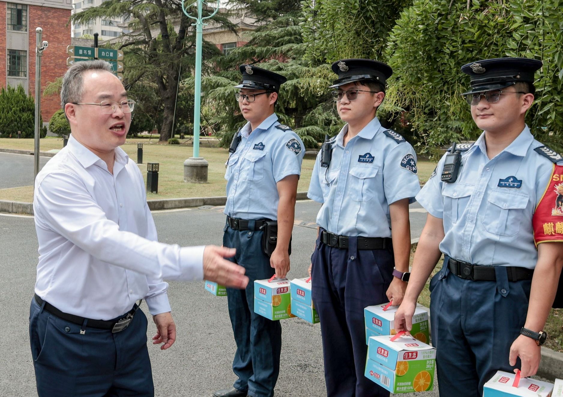 炎炎夏日,暑意正浓。8月21日,校党委书记郭庆松、校长汪小帆、校党委副书记、副校长王瑛带队,深入一线开展暑期“送清凉”慰问活动,看望坚守岗位的安全保卫处、后勤保障与服务中心、基建处等部门工作人员,代表学校送上防暑降温物品和诚挚关怀。校工会、党政办公室相关负责人陪同慰问。