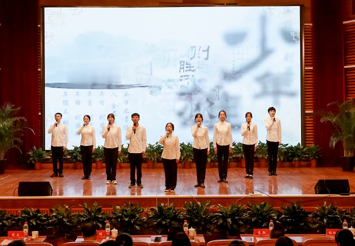 校党委副书记、副校长王瑛出席并致辞,她指出,校园经典诵读活动已逾十载,内容不断丰富,形式不断创新,在立德树人中取得显著成效,希望同学们在经典诵读中深化党史学习,传承红色基因,在延续民族文化血脉中开拓前进,接力奋斗。
