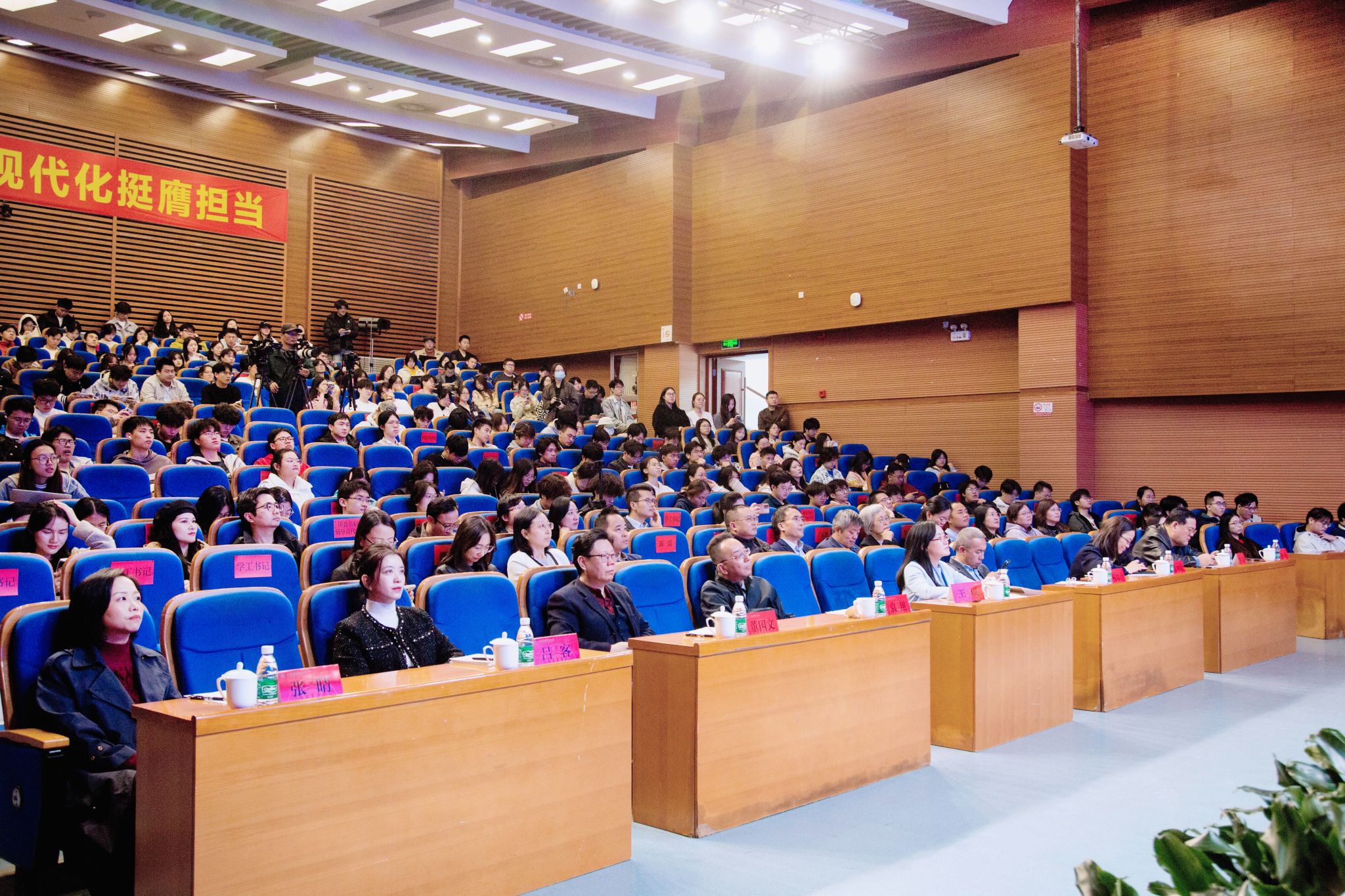 校党委副书记、副校长王瑛,党委常委、党委组织部部长杨瑞君,党委学生工作部部长、人民武装部部长袁翔,党委教师工作部部长、人事处处长朱柳娟出席。课程思政建设办公室成员、各学院(部)党组织书记、副书记,学生宣讲团指导教师、全体团干部、辅导员及学生代表300余人参会。