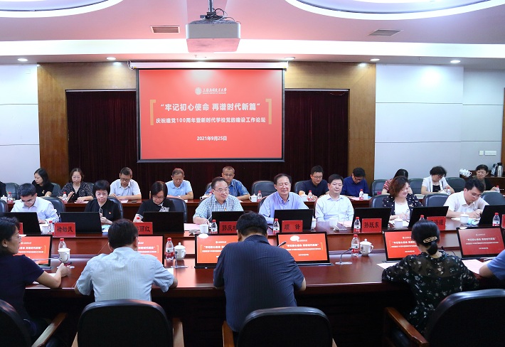 为认真贯彻落实第27次全国高校党建工作会议和9月24日上海高校党建工作会议精神,不断深化对党的历史规律和发展大势的认识与把握,统筹推进党史学习教育与学校高质量发展,9月25日,学校举行“牢记初心使命 再谱时代新篇”庆祝建党100周年暨新时代学校党的建设工作论坛。校党委书记郭庆松出席论坛并致辞,校党委副书记陈海瑾主持论坛开幕式。党委常委、宣传部长杨明,党委常委、组织统战部部长王占勇出席。