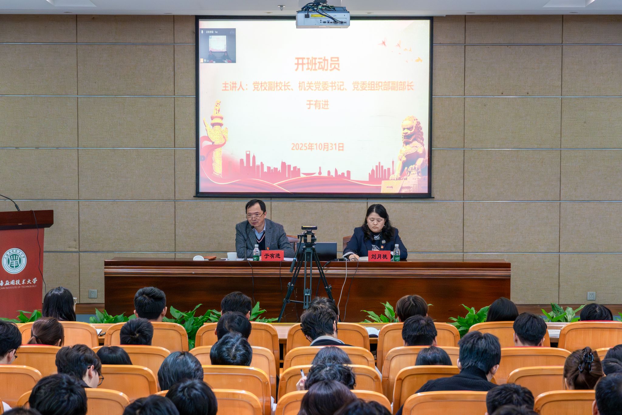 在开班仪式上,校党委组织部副部长、党校副校长于有进聚焦本次培训班的背景、目的与意义作动员讲话。他指出,全体学员要认真学习党的二十届四中全会精神,通过高级党校系统理论学习,筑牢思想根基、端正入党动机,切实发挥模范带头作用,不断提升政治判断力、政治领悟力、政治执行力。他要求学员们以学铸魂,强化思想自觉,始终牢记“听党话、跟党走”的初心使命,坚守对党忠诚的政治品格,坚定理想信念,胸怀“国之大者”;以学促干,强化实干担当,树立想干事的雄心、增强能干事的信心、坚定干成事的决心;以学正风,严格按照培训班的各项要求,遵守学员纪律,要厚植为民情怀,始终保持永不停歇的劲头、永不懈怠的姿态、永不满足的追求,全心全意为人民服务。随后,校党委组织员刘月桃就培训整体安排及学员具体要求作了详细说明。