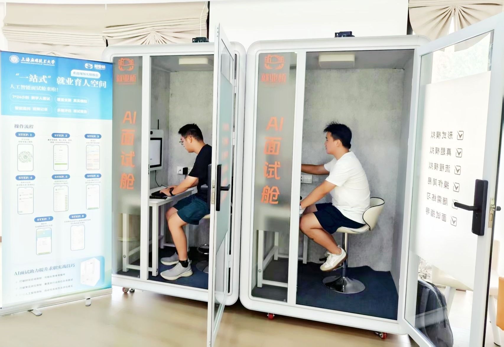 同时,学校精心打造“一站式”就业育人空间,设置“人工智能简历打印一体机”和“AI面试舱”,为学生提供沉浸式模拟面试体验和多维度评估报告,助力学生展现最真实优秀的自己,高效提升求职竞争力。就业服务专区内,还为学生提供一对一简历优化、面试指导、职业咨询、征兵咨询、政策宣传等个性化就业指导服务,通过“专家指导+实战体验”模式,全方位助力毕业生求职。
