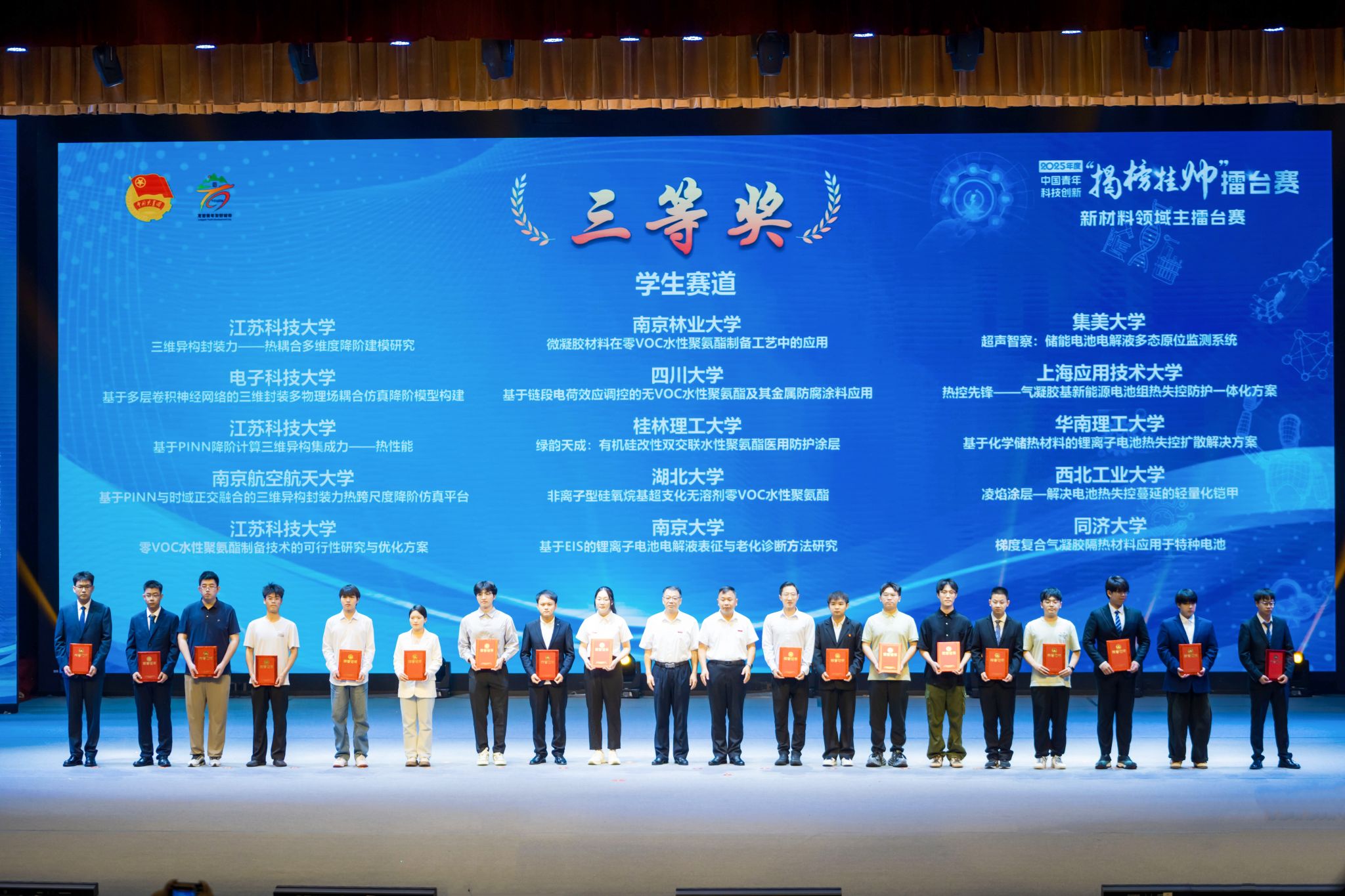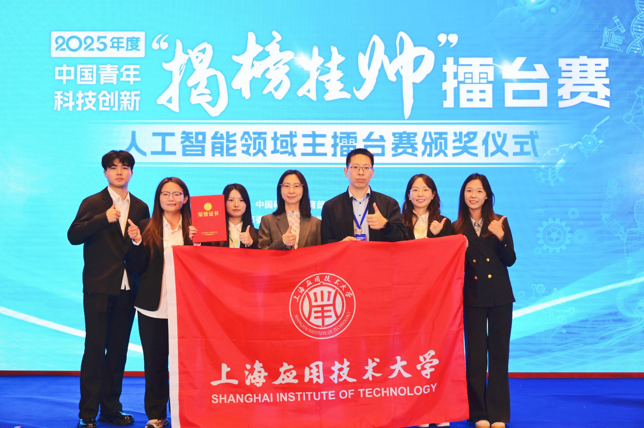 近日,第十九届“挑战杯”竞赛2025年度中国青年科技创新“揭榜挂帅”擂台赛人工智能领域、新材料领域主擂台分别在上海和福建举行,上海应用技术大学推荐项目荣获特等奖、三等奖各1项。