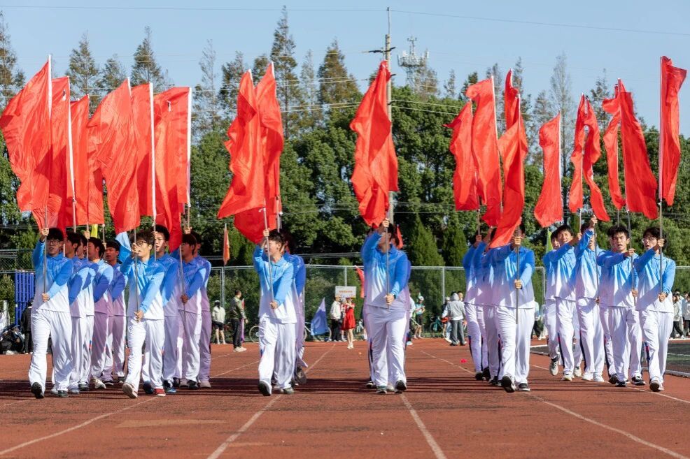 开幕式上,国旗护旗队、校旗护卫队、鲜花方队、红旗方队逐一登场。他们气势威严、英姿飒爽,尽展上应学子的昂扬与活力。
