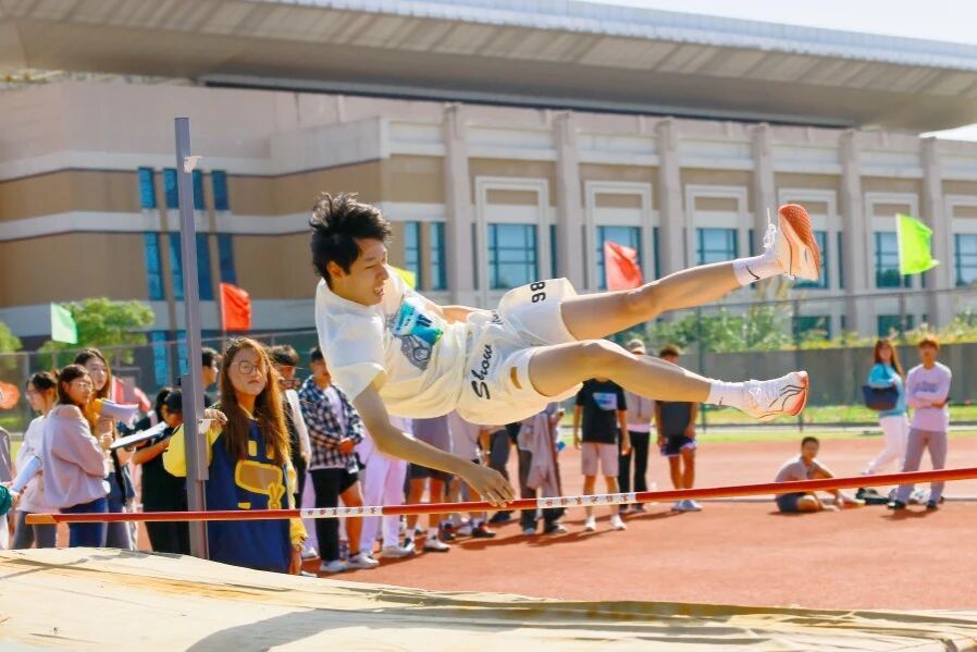 赛场上,运动健儿们凝神屏息,躬身待发,身影瞬间冲出跑道,疾如划破天际的闪电;手握铅球,凝心聚神,一气呵成,娴熟有力;助跑、踏跳、腾跃,惊鸿身姿引来阵阵欢呼;挺身、起跃、跨杆,不断越过更高的杆线,每一个全力以赴的瞬间都在诉说青春的热烈与真诚。