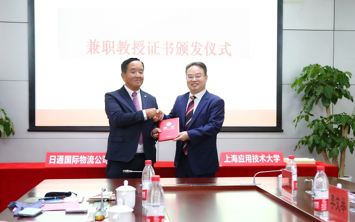 上海市人民对外友好协会副会长景莹,日本通运株式会社东亚地区总裁兼日通国际物流(中国)有限公司董事长杉山龙雄出席签约仪式。校党委书记郭庆松出席并致词,党委副书记、副校长王瑛主持签约仪式。