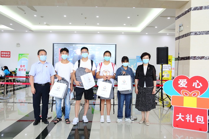 来到迎新现场,与前来报到的2021级新生亲切交流,