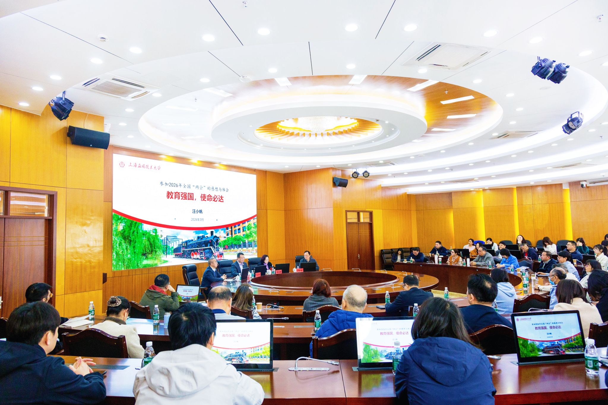 为深入学习贯彻习近平总书记在全国两会期间的重要讲话和全国两会精神,加强思想引领、广泛凝聚共识,引导党外教师把思想和行动统一到党中央决策部署上来,3月31日,学校举行党外教师学习贯彻全国两会精神宣讲报告会。全国政协委员、市知联会副会长、校长汪小帆应邀作专题宣讲。会议由校党委副书记陈海瑾主持。
