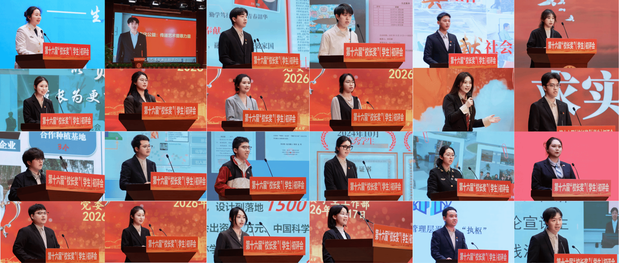 本届“校长奖”(学生)评选自3月2日启动以来,学校统筹部署、广泛宣传,各学部(院)认真组织、严格把关,经学生自主申报、各学部(院)选拔推荐,共产生24名候选人进入校级初评。评审会上,参评同学围绕思想成长、学业发展、实践创新、志愿服务、集体贡献等方面逐一进行宣讲展示,全面呈现新时代大学生昂扬向上、奋勇争先的精神风貌。