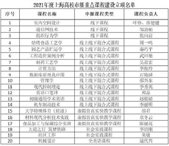 我校20门课程获2021年上海高校市级重点课程建设立项