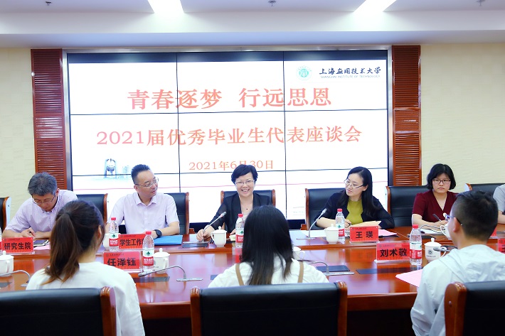 王瑛在主持会议时表示,毕业生即将从在校学生变成上应大校友,不管身份如何转变,学校永远是校友的家和温暖的港湾,希望毕业生们不忘初心,砥砺前行,从百年党史中汲取智慧和力量,以高度的历史使命感和社会责任感不断奋斗,成为堪当民族复兴重任的时代新人。