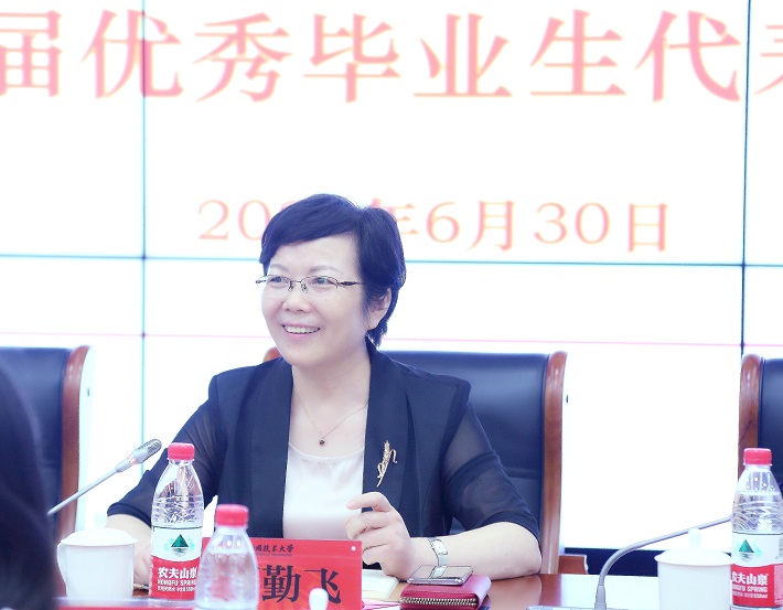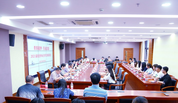 6月30日,学校举行“青春逐梦•行远思恩”2021届优秀毕业生代表座谈会,校党委副书记、校长柯勤飞出席并与优秀毕业生代表亲切交流。校党委副书记、副校长王瑛主持。