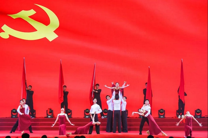 气势恢宏的舞蹈《红旗颂》拉开序幕。岁月坎坷,百年峥嵘。国标舞社团的青年师生们用充满艺术张力的舞蹈生动演绎了中国人民在中国共产党的领导下寻求民族解放和民族复兴的壮丽史诗,深情表达了对革命英雄的赞颂以及对党和祖国的热爱。