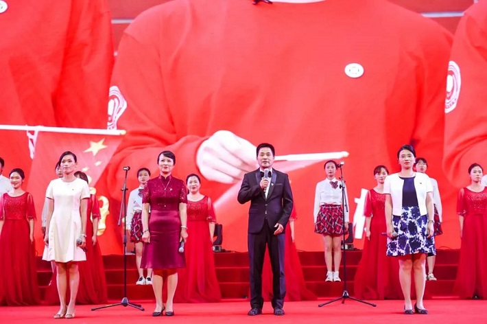 五星熠熠,照耀崭新时代;党旗飘飘,指引前进方向。校工会教工合唱团的老师们带来歌曲《唱支山歌给党听》《弹起我心爱的土琵琶》,生态学院同学们的《绣红旗》、大学生艺术团带来的舞蹈《南泥湾》,以信仰之声歌颂了党的光辉历程。化工学院退伍大学生们朗诵的《红色基因铸就青春梦想》将清澈的爱献给祖国,艺术学院特教班学生的舞蹈《红韵》用火红的扇与穗表达了待之有为、必报中华的爱国情怀。