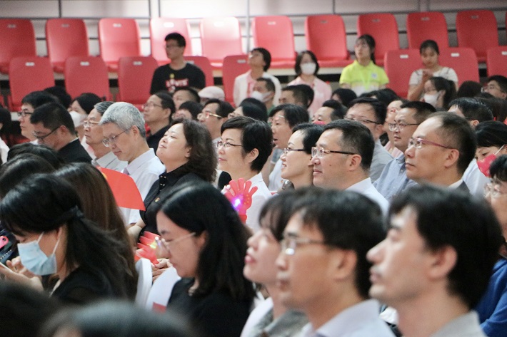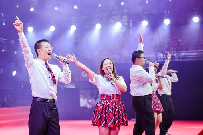 校领导柯勤飞、王瑛、陈海瑾、李健、张锁怀、毛祥东,老领导朱国强、任淑淳以及各职能部门、各二级学院负责人等来到演出现场,4000余名师生一起为即将远行的2021届上应学子送上最真诚的祝福。