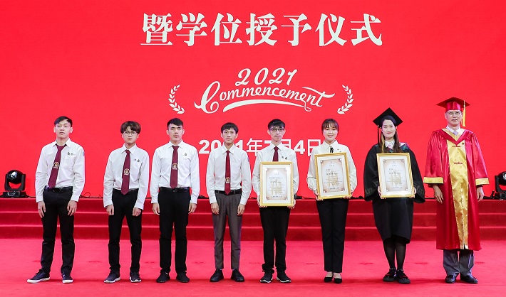 上应学子奋发拼搏、笃志前行,取得了丰硕的成果,涌现了一大批优秀的毕业生代表。城市建设与安全工程学院王瑞、生态技术与工程学院陆亦炜两位同学荣获代表学校最高荣誉的“校长奖”,3名同学(团队)获“校长奖”提名奖,7名同学获“校长奖”入围奖。240名毕业生获得2021年上海市优秀毕业生荣誉称号,451名毕业生获得2021年上海应用技术大学优秀毕业生荣誉称号。