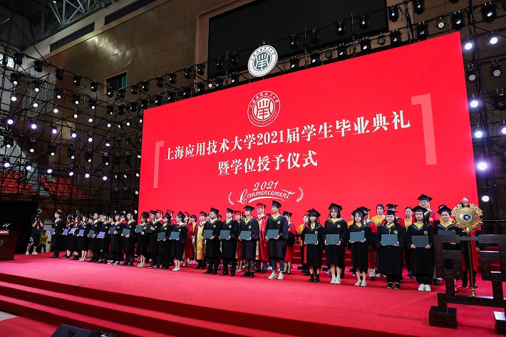 在全场高唱《毕业歌》的嘹亮昂扬歌声里,上海应用技术大学2021届学生毕业典礼暨学位授予仪式圆满结束。