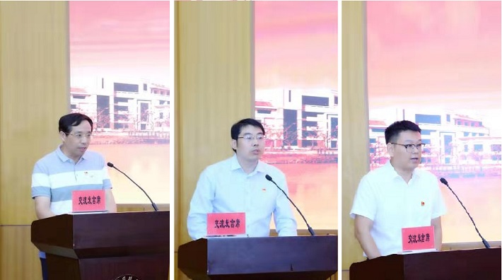 化学与环境工程学院党委书记毛东森,材料科学与工程学院党委副书记、院长杜永,理学院党委书记陈雷在交流会上先后发言,围绕 “改革开放新时期历史”“党的十八大以来的历史”两大专题交流学习体会,分享学习收获,畅谈推进学校和学院创新发展思路举措。