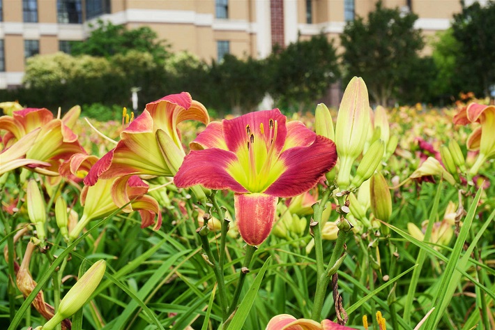 “遥遥的天之涯,萱草花开放,每一朵可是我牵挂的模样……”《你好,李焕英》主题曲《萱草花》婉转动听的旋律在校园上空飘扬,6月17日,走进上海应用技术大学奉贤校区,萱花成为这里绝对“主角”,1000多种萱草花竞相开放,2021中国(上海)萱草文化节在此拉开帷幕。