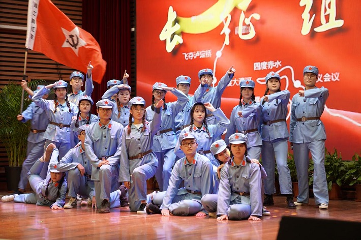 《游击队之歌沙》《南泥湾》《映山红》《少年中国说》《党的赞歌》等一首首“红得鲜艳”的歌曲和朗诵,抒发了师生们满腔热忱的爱党爱国之情。催人泪下的赵一曼《家书》、感人至深的方志敏《可爱的中国》,在师生们富有层次感的诵读声中得到了精彩的演绎,既有声波感染力、又有视觉冲击力,将节目氛围推向了高潮。经典歌曲《我爱你,中国》点燃了全场观众的澎湃热情,赢得现场观众阵阵热烈掌声,演出最终在《不忘初心》中圆满落下帷幕。