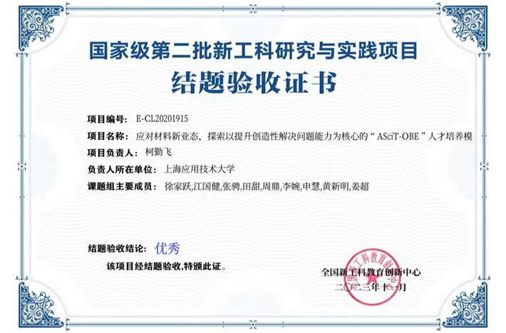 近日,教育部公布了第二批全国新工科研究与实践项目结题验收结果。经项目组申请、专家网络评审、专家会议评审等环节,全国共有820个项目通过结题,其中获评优秀项目120项。我校柯勤飞教授担任项目负责人的“应对材料新业态,探索以提升创造性解决问题能力为核心的‘ASciT-OBE’人才培养模式”验收结果获得优秀,项目成果与案例被教育部全国新工科教育创新中心征集推广。