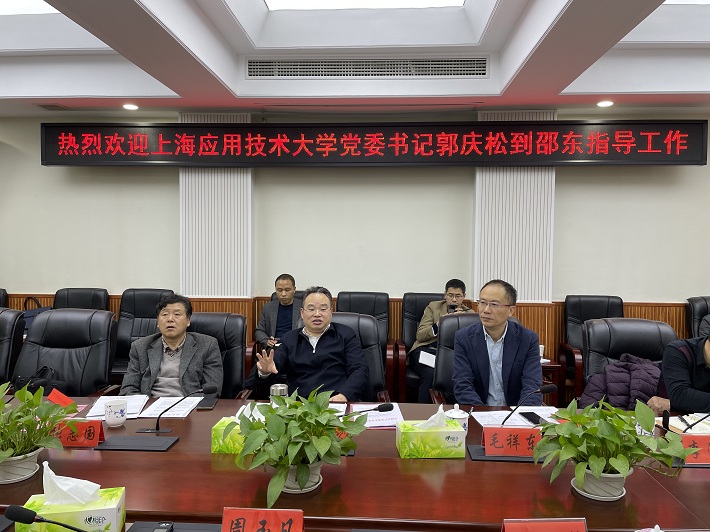 3月18日,校党委书记郭庆松带队赴湖南省邵东市调研,邵东市市长周玉凡热情接待,双方就推动邵东黄花菜产业发展、助力乡村振兴战略进行座谈交流。副校长毛祥东、邵阳市政府副秘书长张雄出席。