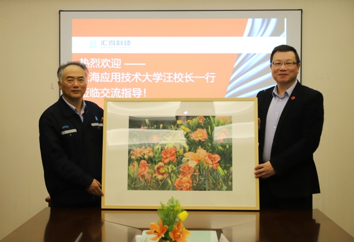 汪小帆对钱建中校友一直以来对母校的关心和支持表示衷心感谢,并围绕进一步深化学校与汇得科技在产教融合、科技创新、人才培养等方面,与钱建中校友及企业相关负责人进行了交流讨论。