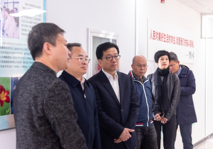 陆敏一行参观考察了香料香精化妆品省部共建协同创新中心和虚拟交互教育创新中心,并深入学校有关部处进行了对接考察交流。