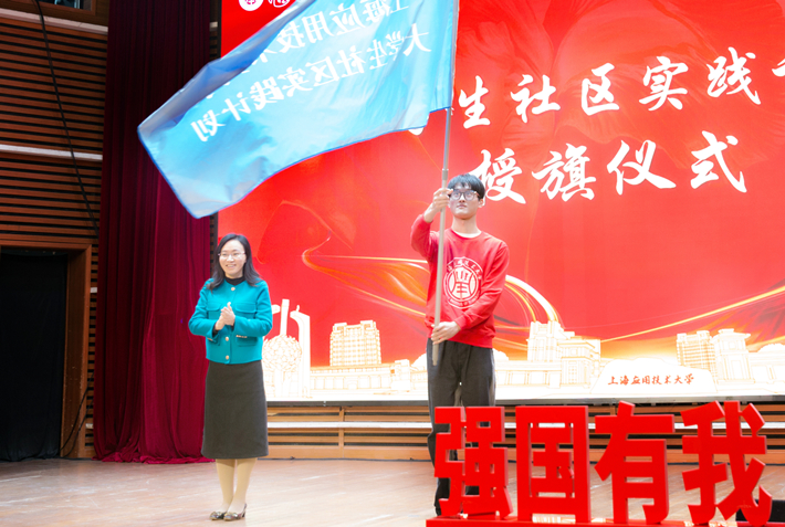 校党委副书记、副校长王瑛出席并为上海应用技术大学大学生社区实践计划授旗。党委常委、党委宣传部部长杨明,党委学生工作部部长、学生处处长袁翔,学校课程思政建设办公室成员,各学院党组织书记、院长、副书记副院长,学生宣讲团指导教师、全体团干部、辅导员及学生代表参加宣讲会。