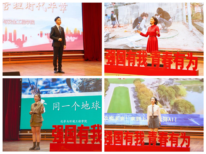 城市建设与安全工程学院以“讲好超级工程中国故事,谱写超级管理时代华章”为题,用生动的事例展现了工程管理的中国特色、中国风格、中国气派。城建学子将以全球视野开启工程科技新征程,绘就新时代工程管理新答卷。生态技术与工程学院的宣讲主题为“绿色缔造生态宜居,园林点缀山河之美”,阐述了中国独特的园林文化及其在城市发展中的重要性,讲述了园林人承载梦想、奋勇向前的感人故事。生态学子将积极投身人民城市建设,努力绘就绿色宜居的未来画卷。化学与环境工程学院围绕“同一个地球,同一个环境”,讲述了环境治理的典型事例及学院环境工程专业的建设情况。作为绿色中国的建设者,他们将不断提高专业素养,以挺膺担当的姿态为打好污染防治攻坚战和美丽中国建设贡献力量。计算机科学与信息工程学院聚焦“拥抱AI,赋能未来”,展现了人工智能学子拥抱时代、赋能技术的决心。身为未来人工智能领域尖兵,他们将努力学习前沿技术,投身技术创新,赋能强国建设!