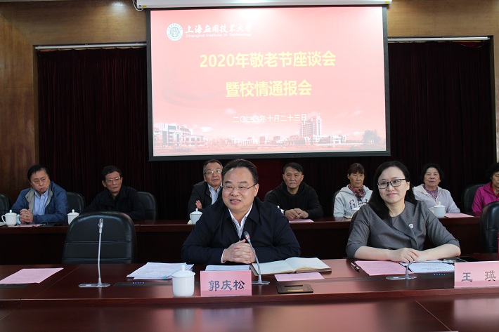 正值重阳佳节到来之际,10月23日,学校在徐汇校区召开2020年敬老节座谈会暨校情通报会,校党委书记郭庆松出席会议并通报学校近期工作,听取离退休干部对学校工作的建议。校党委副书记、副校长王瑛主持会议。离休干部代表、退休局级干部、教授代表、退休党支部书记和委员、离退委同志五十余人参加会议。