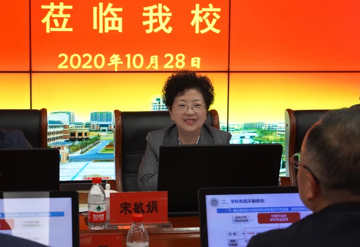 宋敏娟简要介绍了我校发展历程,重点介绍了近年来学校在办学特色、学科布局、人才培养等方面取得的成绩,以及近年来学校推进“三全育人”、课程思政等方面的主要特色和成效。
