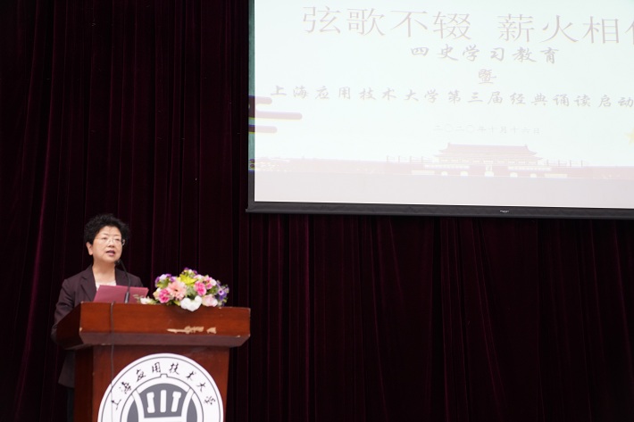10月16日下午,学校举行“弦歌不辍 薪火相传”四史学习教育暨第三届经典诵读启动大会。校党委副书记宋敏娟出席并致辞。人文学院院长刘红军,院党总支书记周文,工程创新学院、鲁班书院常务副院长章冬云,工程创新学院党总支书记王清成,宣传部、学工部等部门相关负责人出席。人文学院、鲁班书院部分教师代表及2020级新生共420余人参会。