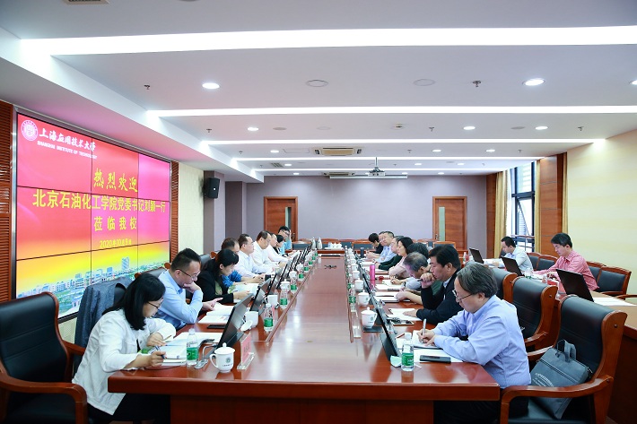 10月9日,北京石油化工学院党委书记刘颖、纪委书记雷京、副校长焦向东、副校长张泉利等一行来访我校,校党委书记郭庆松,党委副书记、纪委书记何星海,副校长毛祥东热情接待,双方进行座谈交流。