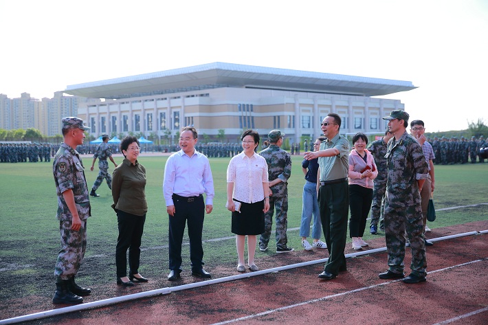 9月27日上午,校党委书记郭庆松,校党委副书记、校长柯勤飞,校党委副书记宋敏娟来到军训现场,看望正在紧张训练的承训教官、参训学生及工作人员。