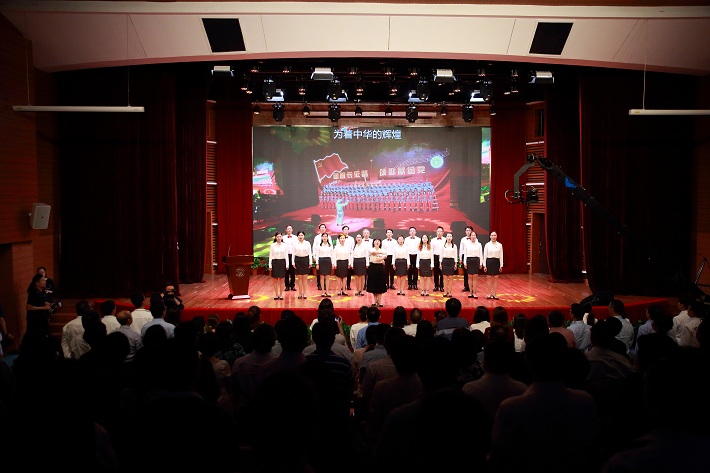 本次党课是学校党委巩固深化“不忘初心、牢记使命”主题教育成果落地见效的重要内容,围绕“谱新时代科技兴国光辉篇章”“育新时代应用创新卓越人才”“做新时代有理想信念和家国情怀的奋斗者”三个篇章展开,通过导课、结课、主题演讲、视频讲述、情景表演等形式,献上了一堂别开生面的特别党课,激情讲述了上应大党组织和党员队伍坚守初心、勇担使命的家国情怀和砥砺担当。
