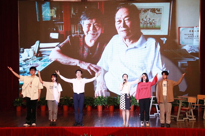 “同学们,如果你们现在有一百万,想要拿它做什么?”“我想去环球旅行。”“我想买个大房子。” ……这是师生共同演绎的情景剧中的一幕。《拼却老红一万点,换将新绿百千重——她把一切献给党的教育事业》以情景表演和视频讲述的方式倾情呈现了学校离休党员教师祝尔纯和她的丈夫眭忠诠两位老人捐资助学的感人故事。怀着对教育培养下一代和思想政治教育工作的强烈责任感,2001年,二老夫妇捐出数十年省吃俭用积攒下来的十万元,在学校设立“忠诠——尔纯思想政治教育奖”,这是上海乃至全国高校第一个“思想政治教育奖”。此后的20年间,两位老人陆续把国家补给的房贴、积蓄,乃至卖掉唯一的一套住房自己住进养老院,将房款捐给了学校,累计捐出220万元。“爱的方式有许多种,我们只不过选择了一种。”眭忠诠、祝尔纯两位老人对教育事业的关爱和付出在师生们的心头久久激荡……