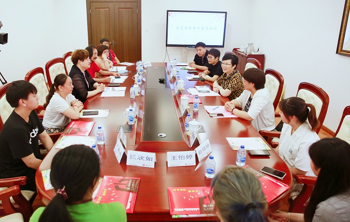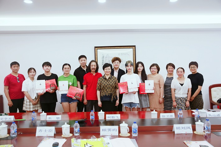 我校艺术学院史争光老师向四名学生赠送了由我校主办的2019年亚洲平面设计双年展画册,并就艺术学院人才培养特色做了详细介绍。
