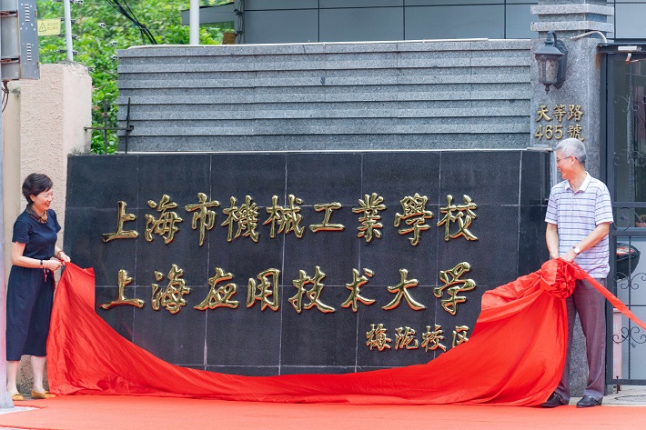 会前,张锁怀和上海市机械工业学校党总支书记赵洁慧为“上海应用技术大学梅陇校区”揭牌。