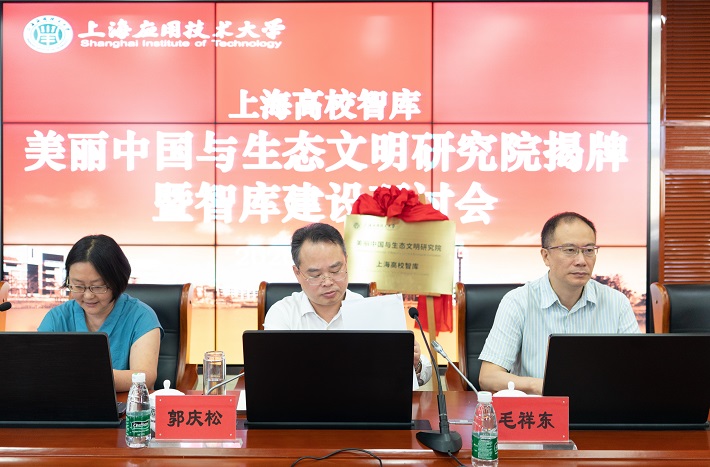 7月31日,学校举行上海高校智库“美丽中国与生态文明研究院”揭牌仪式暨智库建设研讨会。校党委书记郭庆松出席并讲话。副校长毛祥东,上海市委党校决策咨询部主任唐颖,上海市教卫党委办公室二级调研员程灵芝及上海市委党校副教授、上海市习近平新时代中国特色社会主义思想研究中心研究员邹磊出席。校党委常委、宣传部长杨明主持。